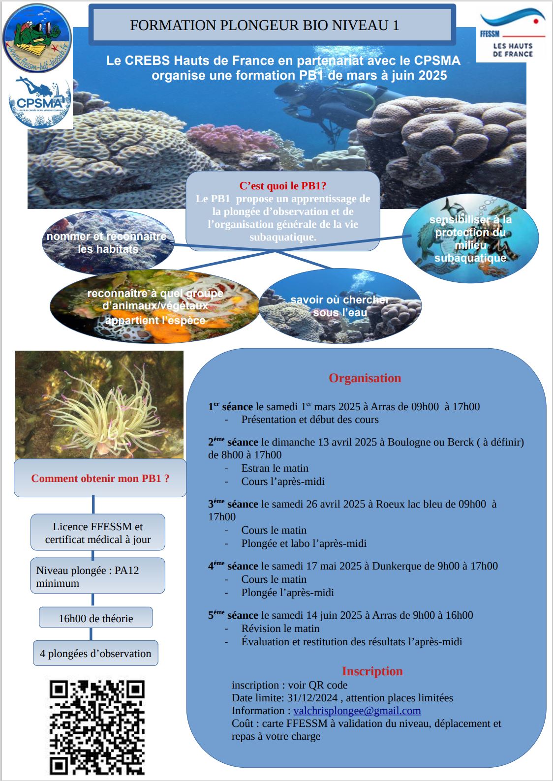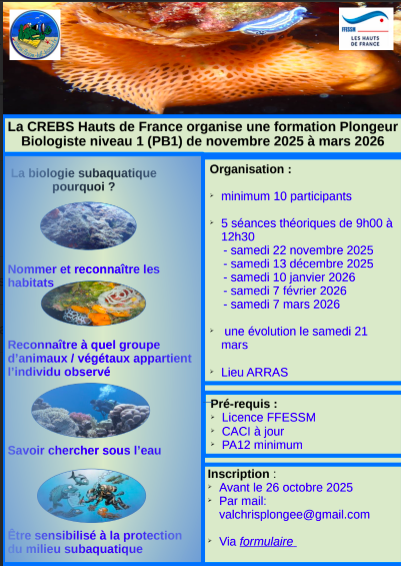 Vous étez intéressé par la vie marine , vous souhaitez comprendre ce que vous observez en plongée, la formation PB1 est pour vous ! inscription jusqu’au 31/12/2024
