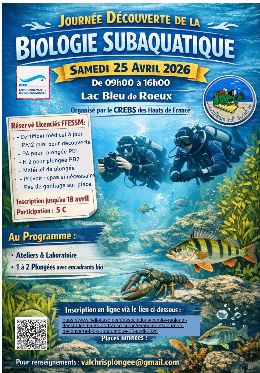 Ce stage est ouvert aux encadrants bio et aux PB1 et PB2 ou à tout intéressé par la bio, licencié à la FFESSM, avec un certificat médical de non contre indication à la plongée à jour (CACI).